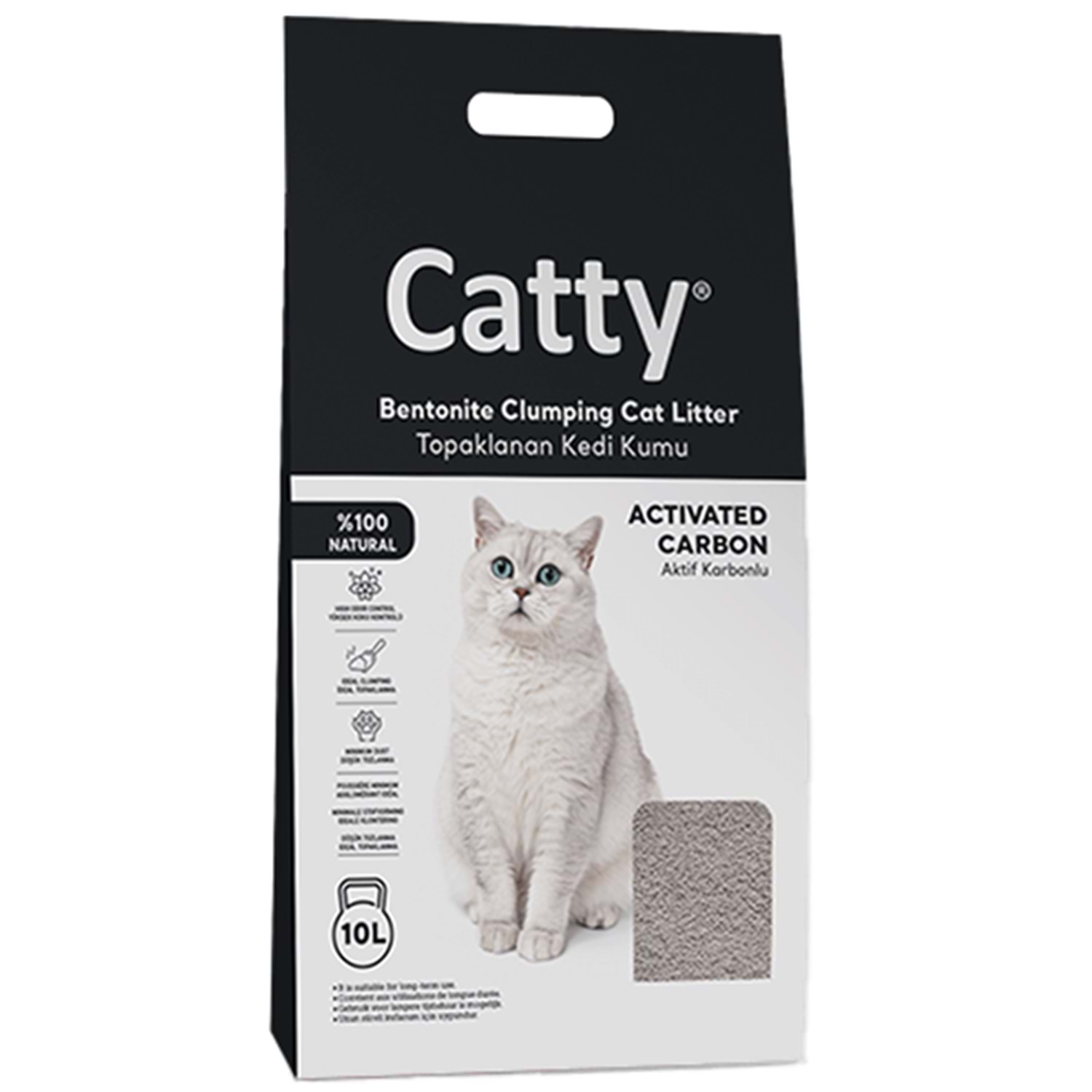 Catty Bentonit Activated Carbon Aktif Karbonlu Topaklanan İnce Taneli Kedi Kumu 10 Lt