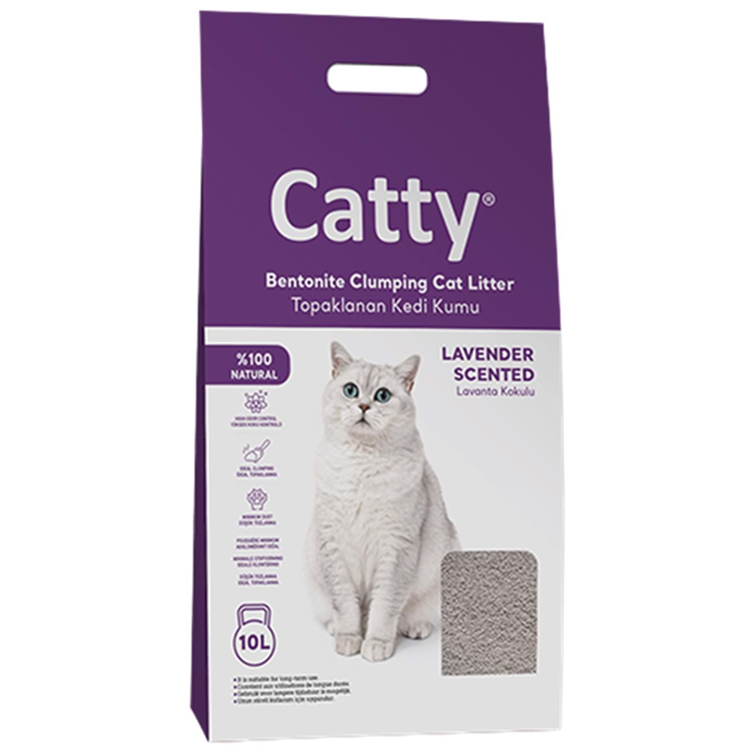 Catty Bentonit Lavander Scented Lavanta Kokulu Topaklanan İnce Taneli Kedi Kumu 10 Lt