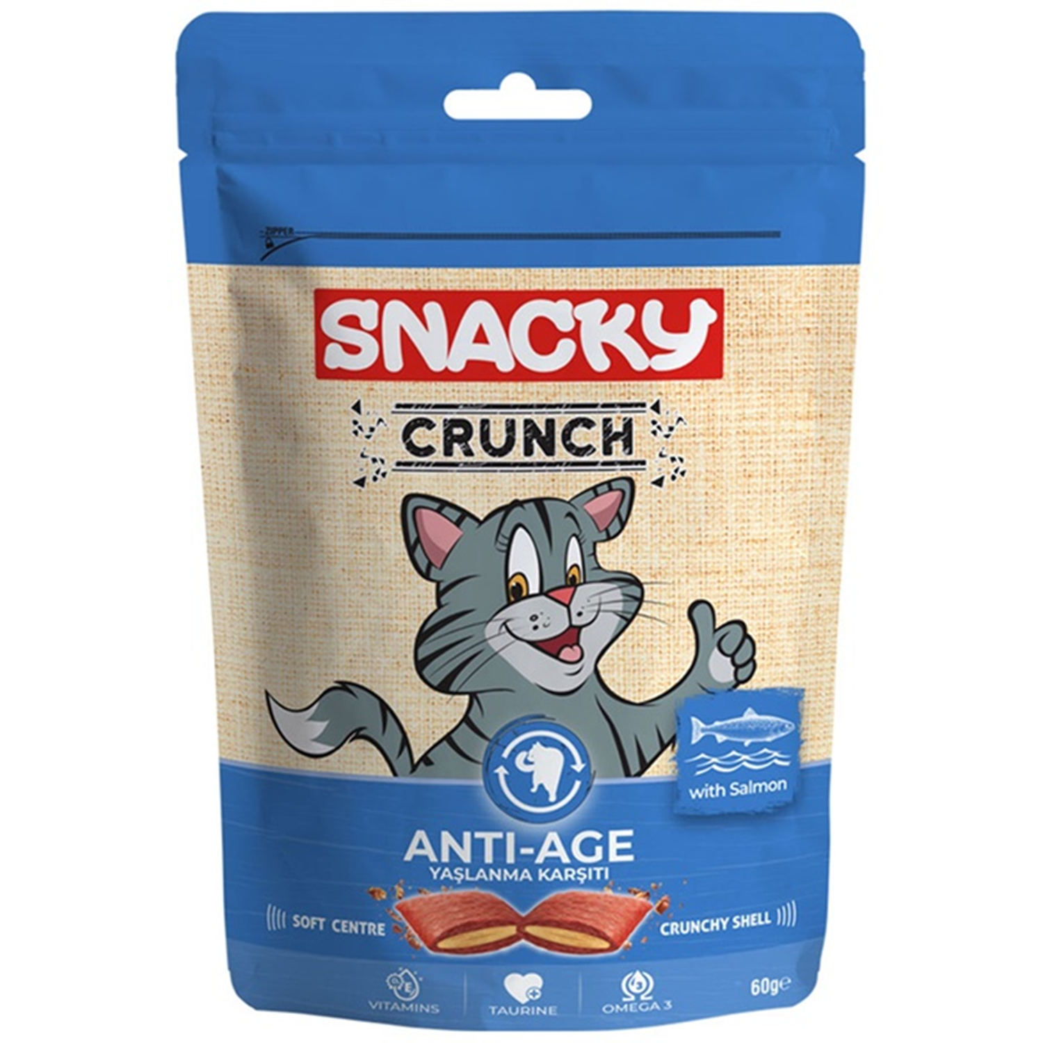 Snacky, içeriğindeki Yaşlanma Karşıtı formülü ile kedinizin daha sağlıklı olmasını sağlar.