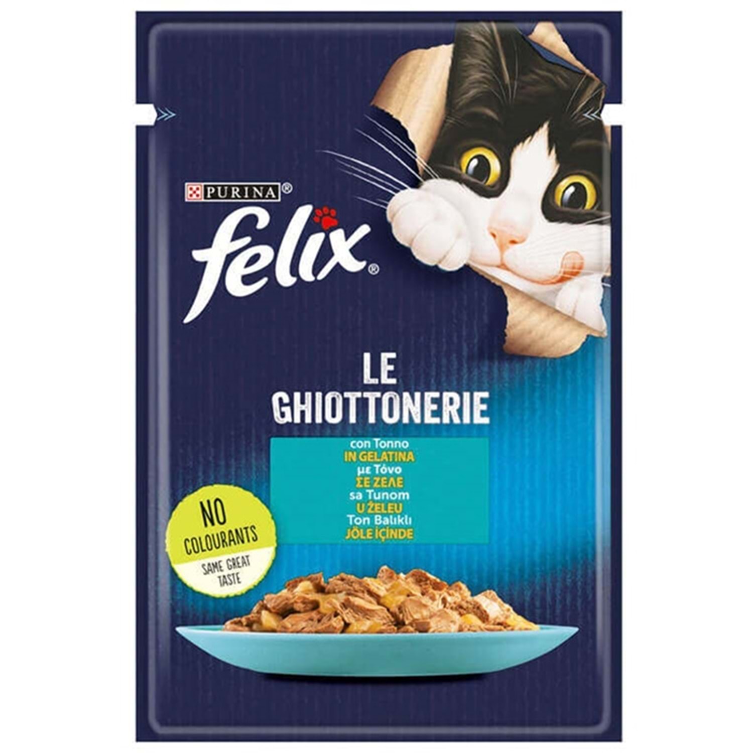 Felix ton balıklı yaş kedi maması, yetişkin kediler için jöle içerisinde, gerçek ton balığı eti parçacıkları içeren, lezzetli yaş kedi mamasıdır. Kısırlaştırılmış kediler için de uygundur.